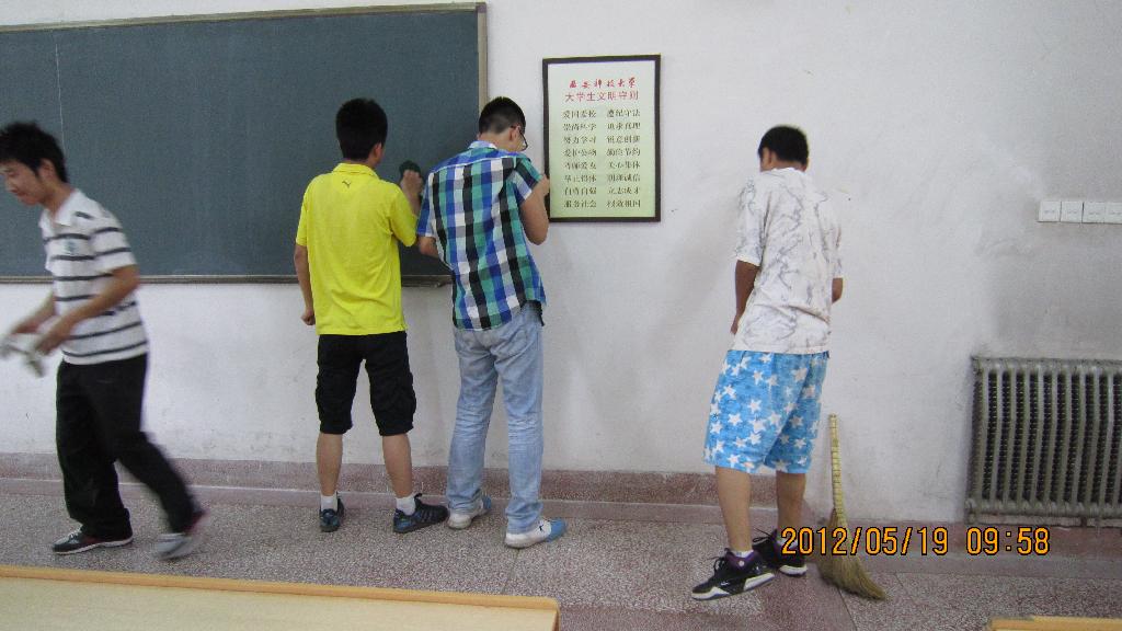5月19日上午,新葡官网第三十九期高党学员共106人在三教参加义务劳动,他们分别对三教的多个教室进行了扫除工作,使教室环境焕然一新。