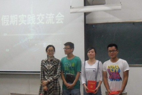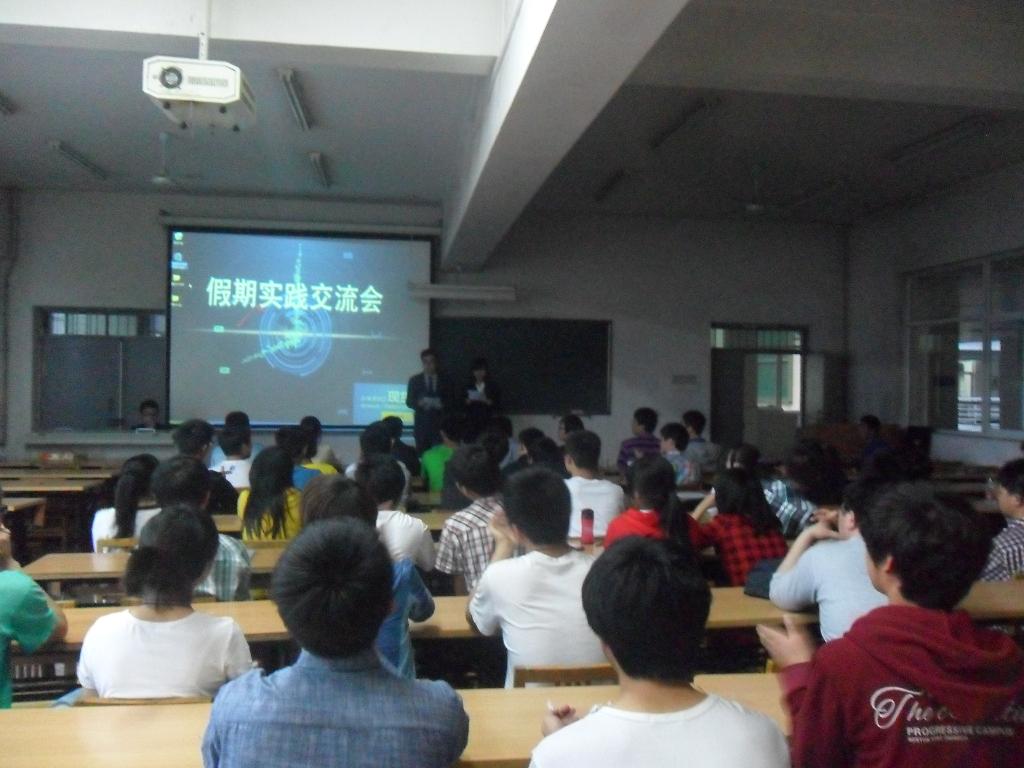 4月26日晚,新葡官网在3教409室举行假期实践交流会决赛,团委书记陈霂老师、辅导员程鹏老师与学生会干部出席交流会并参与评分。