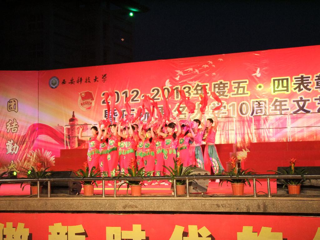 5月18日晚,我校2012—2013年度五四表彰大会暨庆祝更名大学十周年文艺汇演在我校临潼校区明德广场隆重举行。校各级领导、各学院(部)分管学生工作的书记,临潼校区全体辅导员、学生代表共4000余人参加了本次活动。机械学院的精彩演出赢得了全场热烈的掌声。