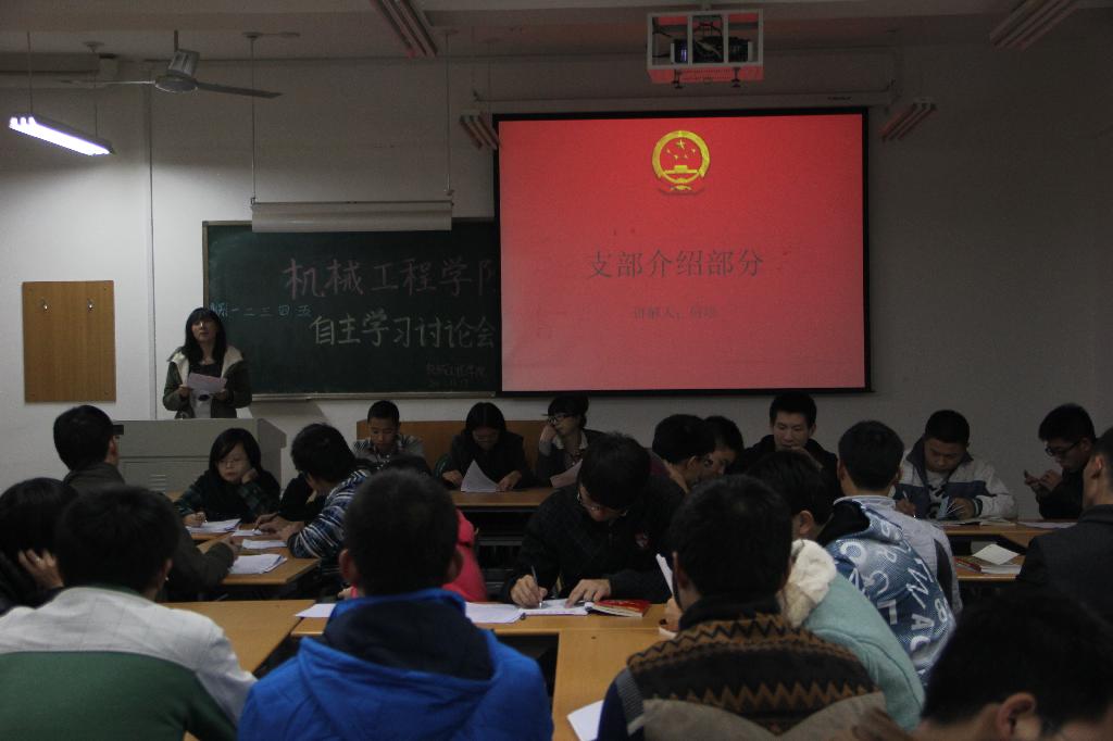 自学讨论活动把学员分为五组,以听、议、答等形式,学习讨论了新葡官网第三党支部的基本情况、党史、基本入党程序和十八大的会议精神。学员们在活跃的抢答环节展示了对党组织的认识和觉悟,也为以后早日入党打下良好的基础。