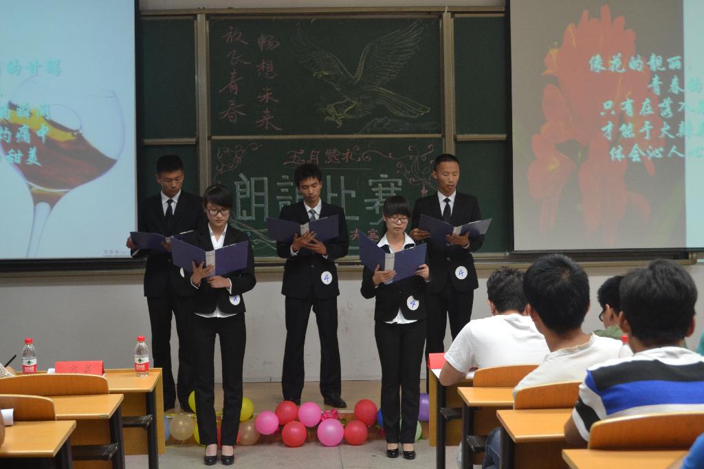 2014年5月29日下午七点,由3003新葡官方网站院组织部主办的诗歌朗诵比赛在九教105室顺利召开。参加此次活动的评委有校兄弟院学长,新葡官网院学生会干事和委员及参赛选手亲友团等。