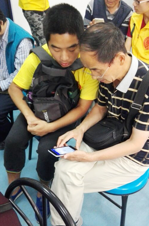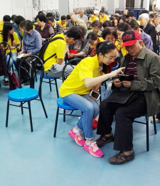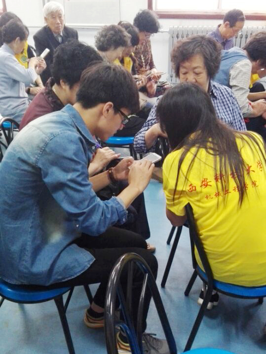 到达雁塔校区后,志愿者们对退休老教师们进行一对一的帮助,耐心细致的给他们讲解了智能手机的使用方法,并教他们如何下载和使用手机应用软件。在志愿者的帮助下,退休老教师们能够熟练使用智能手机,并能够操作诸多AAP客户端功能。