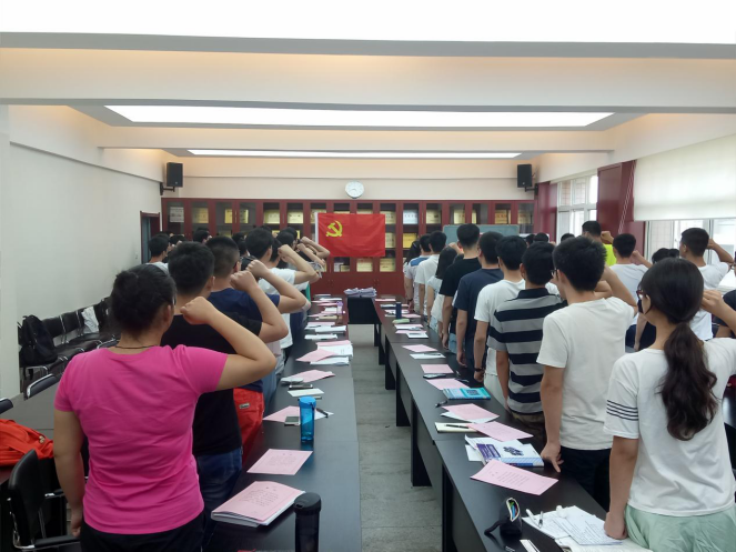 会议发展了江豪等25名同志为中共预备党员,各发展对象依次上台汇报自己的基本情况、对党的认识及入党志愿。随后各入党介绍人及与会党员对发展对象在生活、学习、实践等方面进行了综合评价,并对其能否入党表明了自己的态度。全体正式党员采取无记名投票表决一致同意吸收江豪等25名同志为中共预备党员。最后在支部书记吕叻加的带领下,新党员进行入党宣誓。通过宣誓不仅使新党员深受激励和鼓舞,更增进新党员对党的认识和崇敬,进一步明确自己的努力方向和奋斗目标,坚定新党员们引领时代先锋,以实际行动向党的96周年献礼。