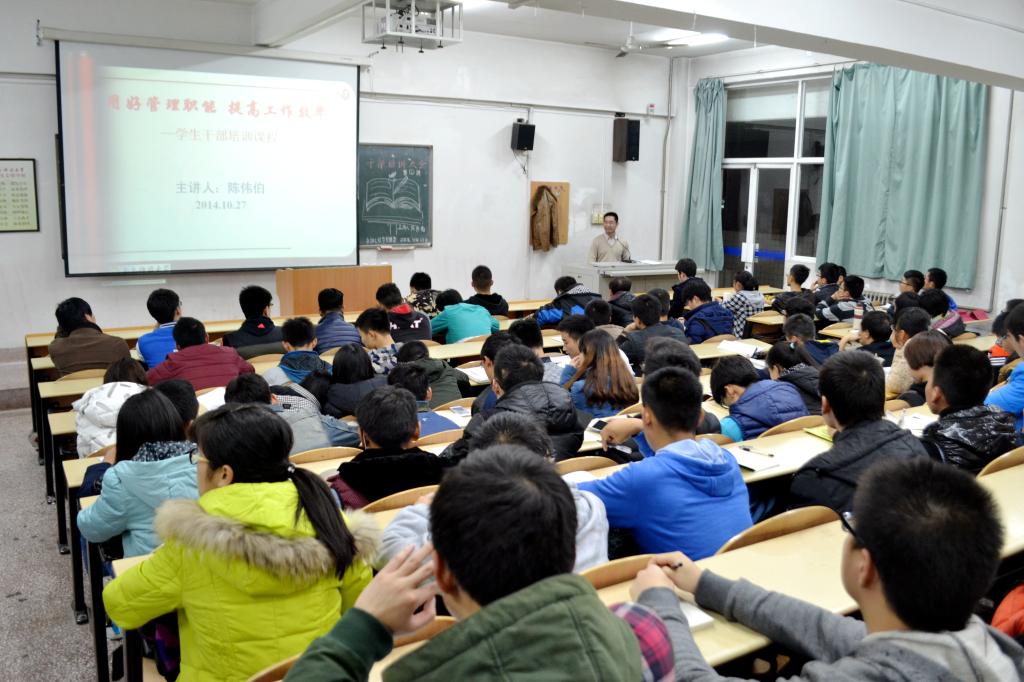 11月23日晚19点,3003新葡官方网站第23期学生干部培训班第一讲举办。本讲邀请材料学院分团委书记陈伟伯主讲,第23期培训班全体学员参加了本次培训。