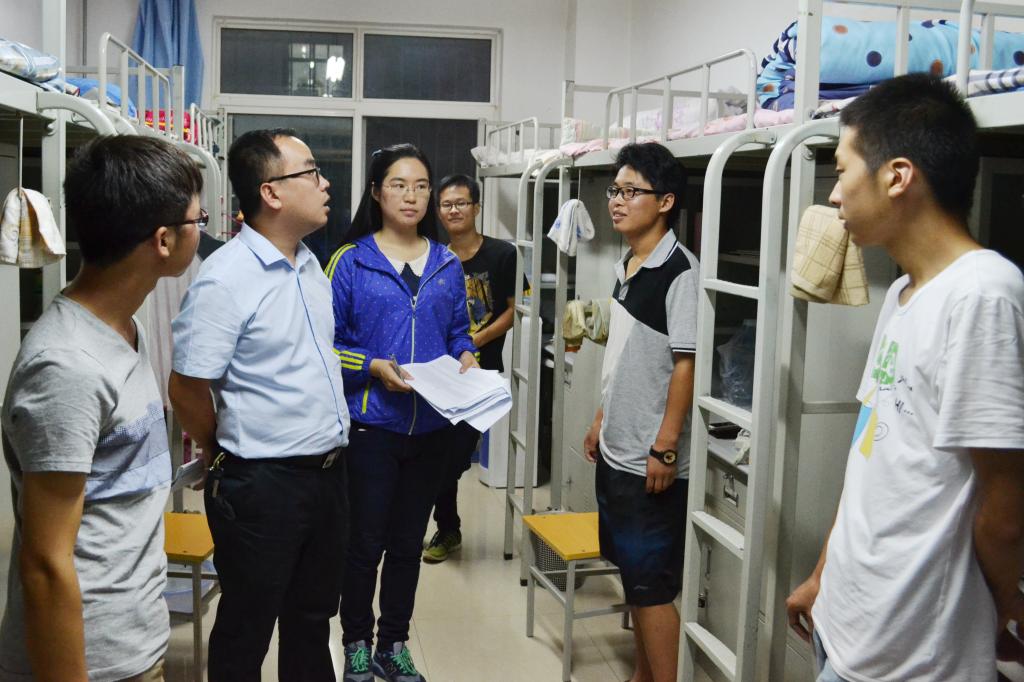 在2个多小时的走访过程中,两位辅导员老师详细了解了同学们初次来到大学对宿舍设施、生活环境的意见,并进行了卫生检查和安全隐患排查工作。在交谈中,芮老师亲切询问同学们来自哪里,食堂口味是否可口,并就宿舍安全、宿舍卫生等问题与同学们进行了交流。