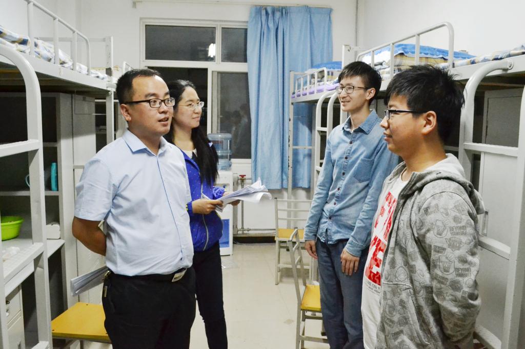 为了进一步增强师生之间的沟通,更好地了解学生的生活状况,9月8日下午,3003新葡官方网站15级新生辅导员芮智刚与刘烨一起走访了新生宿舍。