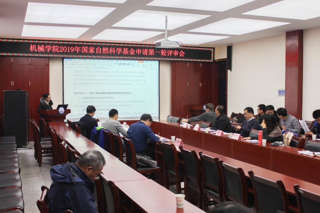 12月28日下午,机械学院在雁塔校区学院会议室举办了2019年度国家自然科学基金申报第一轮答辩评审会。长安大学原校长马建教授、西安交通大学曹军义教授、西北工业大学吴宝海教授、我校薛河教授、杨来侠教授及机械学院副院长寇发荣教授等受邀担任基金项目评审专家。马建教授担任评审组组长。科技处副处长张涛及部分教师参加基金评审会启动仪式。