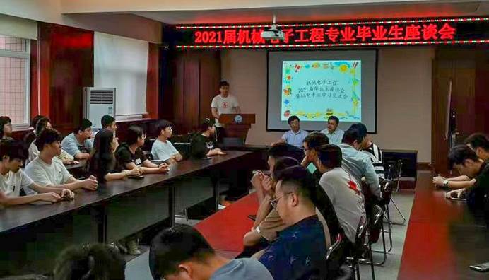 6月16日中午,机械电子系在临潼校区骊山校园机械学院320会议室召开2021届毕业生座谈会。机械学院党委副书记尹弘,副院长赵栓峰、机械电子系主任毛清华出席,机电17级毕业生代表和机电18级、19级、20级学生代表参加了座谈会。座谈会由机械电子系主任毛清华主持。