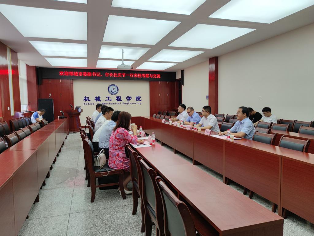 6月19日上午,山东邹城市委副书记、市长杜庆节一行来校考察交流,并在雁塔校区北院机械学院会议室召开座谈会,邹城市邹城经济开发区、投资促进局、山东天河科技股份有限公司等单位负责人,机械学院党委书记张金来、院长张旭辉、科技处副处长张涛、副院长寇发荣参加。座谈会由副院长寇发荣主持。