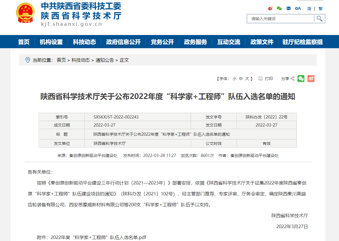 近日,陕西省科学技术厅公布了2022年度“科学家+工程师”队伍入选名单,机械学院杨来侠教授负责的面向矿区环境的煤矿机械激光熔丝增材制造修复技术“科学家+工程师”队伍、宗学文副教授负责的叶轮增材制造产业化应用“科学家+工程师”队伍、杨文娟副教授负责的智能掘进技术及装备“科学家+工程师”队伍等三支队伍在列。