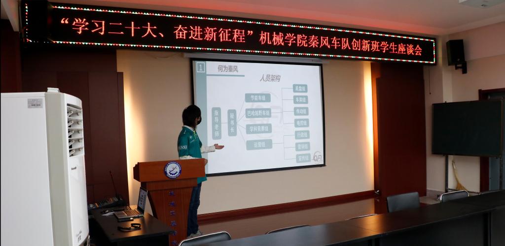 来兴平参观了机械学院秦风车队创新实验室,听取了车队负责人研发成果介绍。座谈会上,大家观看了秦风车队视频宣传片,院长曹现刚和车辆工程系主任高怀斌介绍了车辆系概况、车辆系在专业课程优化、人才培养目标以及“终身学习”专业情怀植入创新班建设的理念。秦风车队创新班学生负责人围绕“何为秦风”“车辆学科竞赛”“科技竞赛与文化活动”“车队成员风采展示”“车队未来发展规划”五个方面对车队创新班建设做了全面介绍。学院学生工作负责人尹弘介绍了车辆系近五年就业情况以及学院创新创业实践开展情况。在师生交流环节,创新班方一晓、张伊晨、章弘帅等十余名同学汇报了参与产品研发、科技赛事,从不敢实践到勇于挑战、勇于创新与实践的心路历程以及在创新班成长的感恩、感慨与感动。