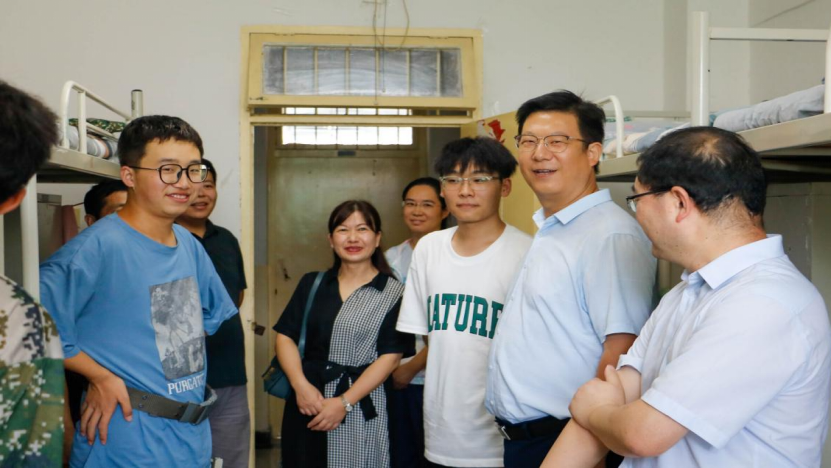 8月31日下午,3003新葡官方网站党委书记郭小平、院长曹现刚、副书记尹弘以及2023级新生辅导员一行赴学生公寓看望2023级新生。